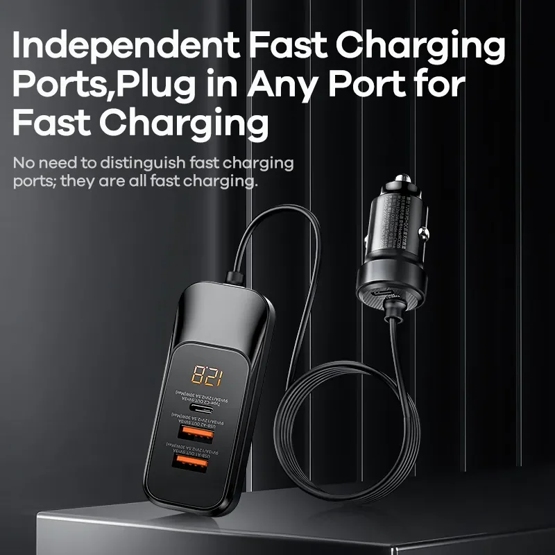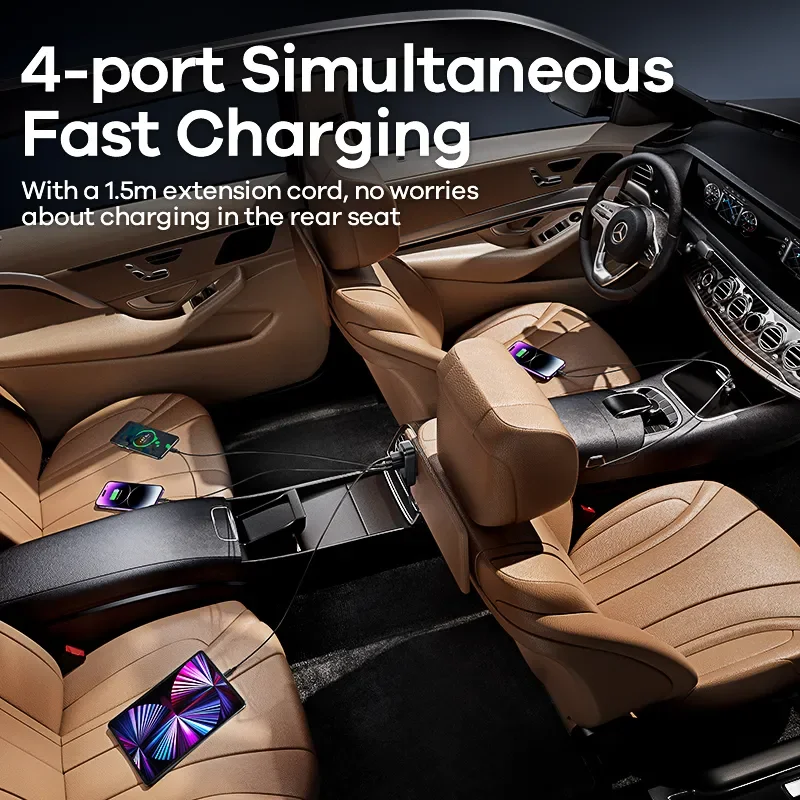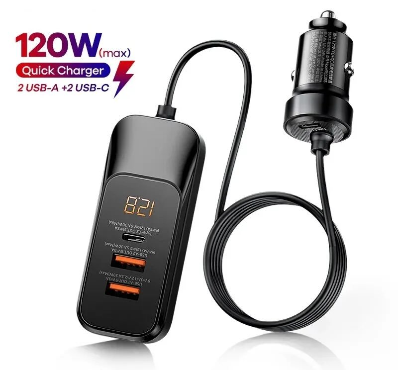 - 120W Car Charger for Back Seat: 2USB-C+2USB-A four-port independent output supports fast charging of four devices simultaneously. With 59 inches Extension Cable.